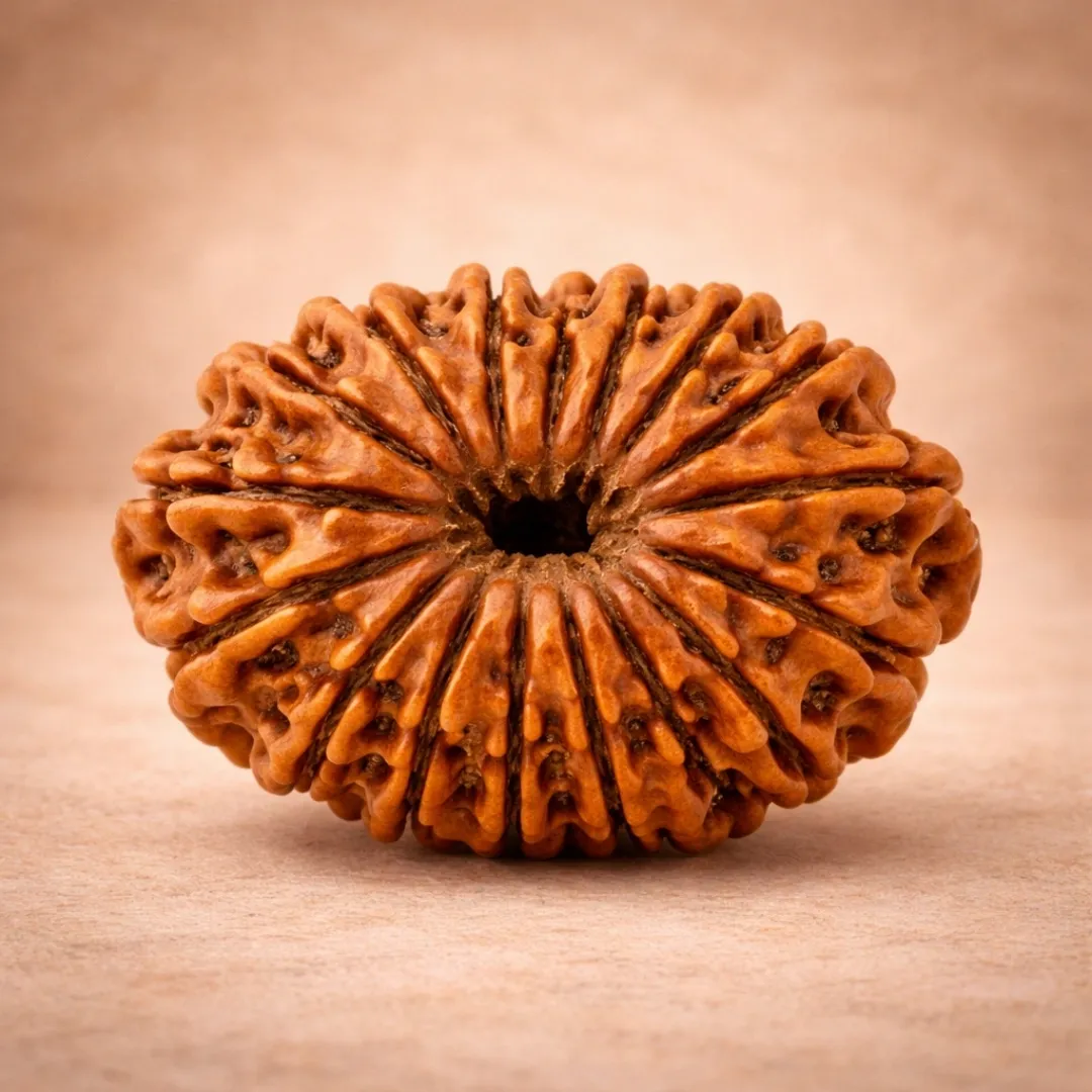 Step 1 – Authentic Selection 14 Mukhi ek rare Rudraksha hai – Nepal origin mein genuine pieces limited hote hain. "Super" grade ka matlab – 14 mukhi lines clearly defined, healthy bead, natural shape. Hum quantity ke peeche nahi bhagte, quality ensure karte hain.