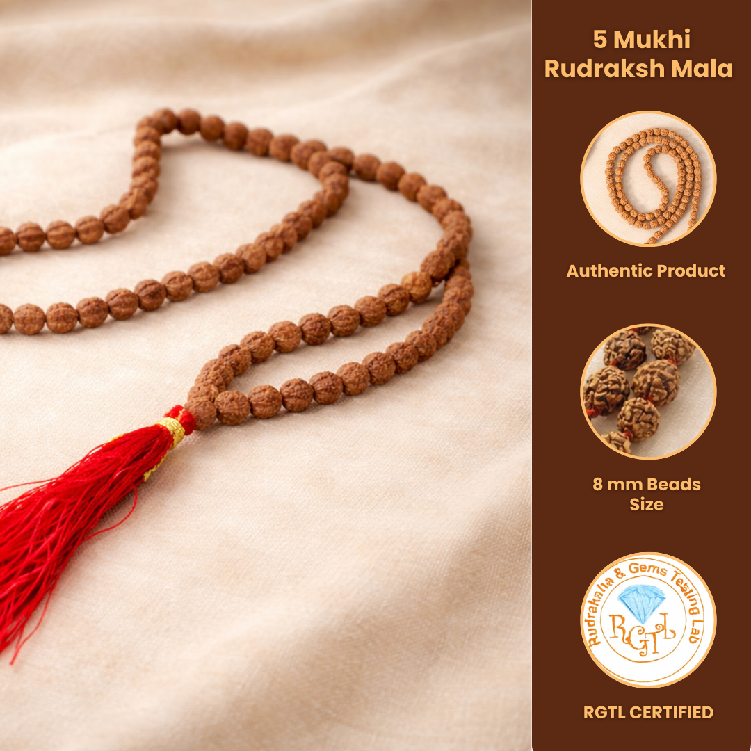 5 Mukhi wo Rudraksha hai jo koi bhi pehan sakta hai, kisi bhi time, kisi bhi purpose ke liye. Yeh universal hai.