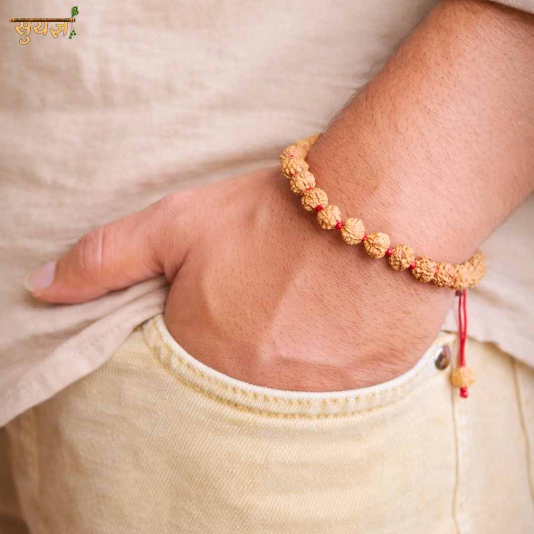 8 Mukhi Rudraksha ko hum Suyagya mein "The Obstacle Remover Bead" maante hain. Yeh Lord Ganesha ka swaroop hai — Vighnaharta, Pratham Pujya. Iska kaam hai aapke raaste ke obstacles hatana aur success ka flow smooth karna.
