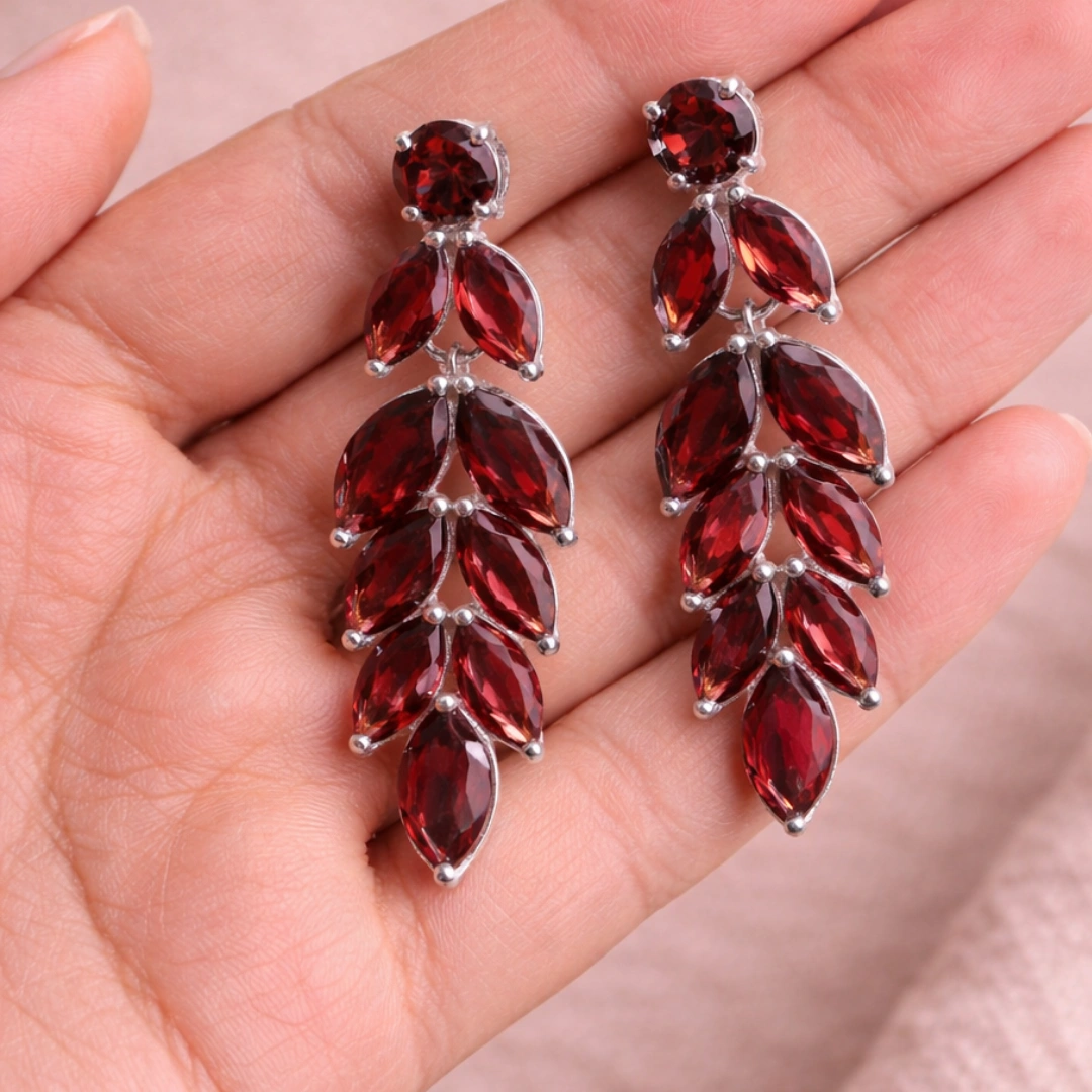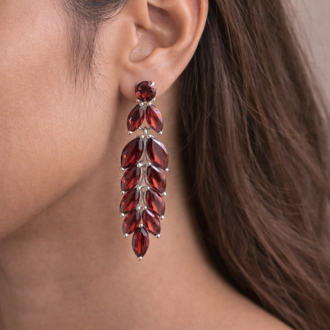 Yeh 925 Sterling Silver Dangle Garnet Earrings ready hain teri ears pe dancing fire laane ke liye. Passion chahiye? Elegance chahiye? Movement chahiye? Yeh earrings graceful fire deliver karti hain har sway mein.