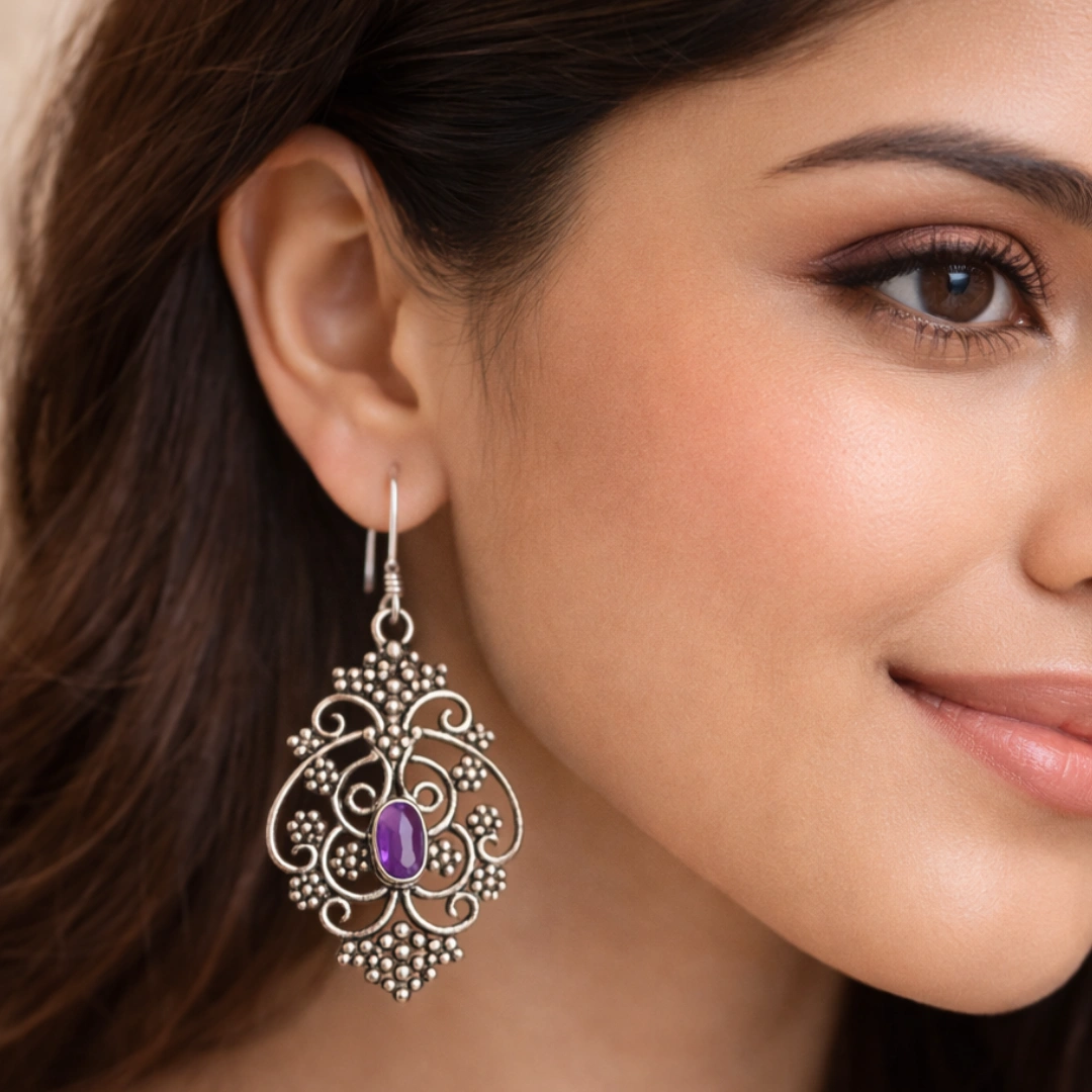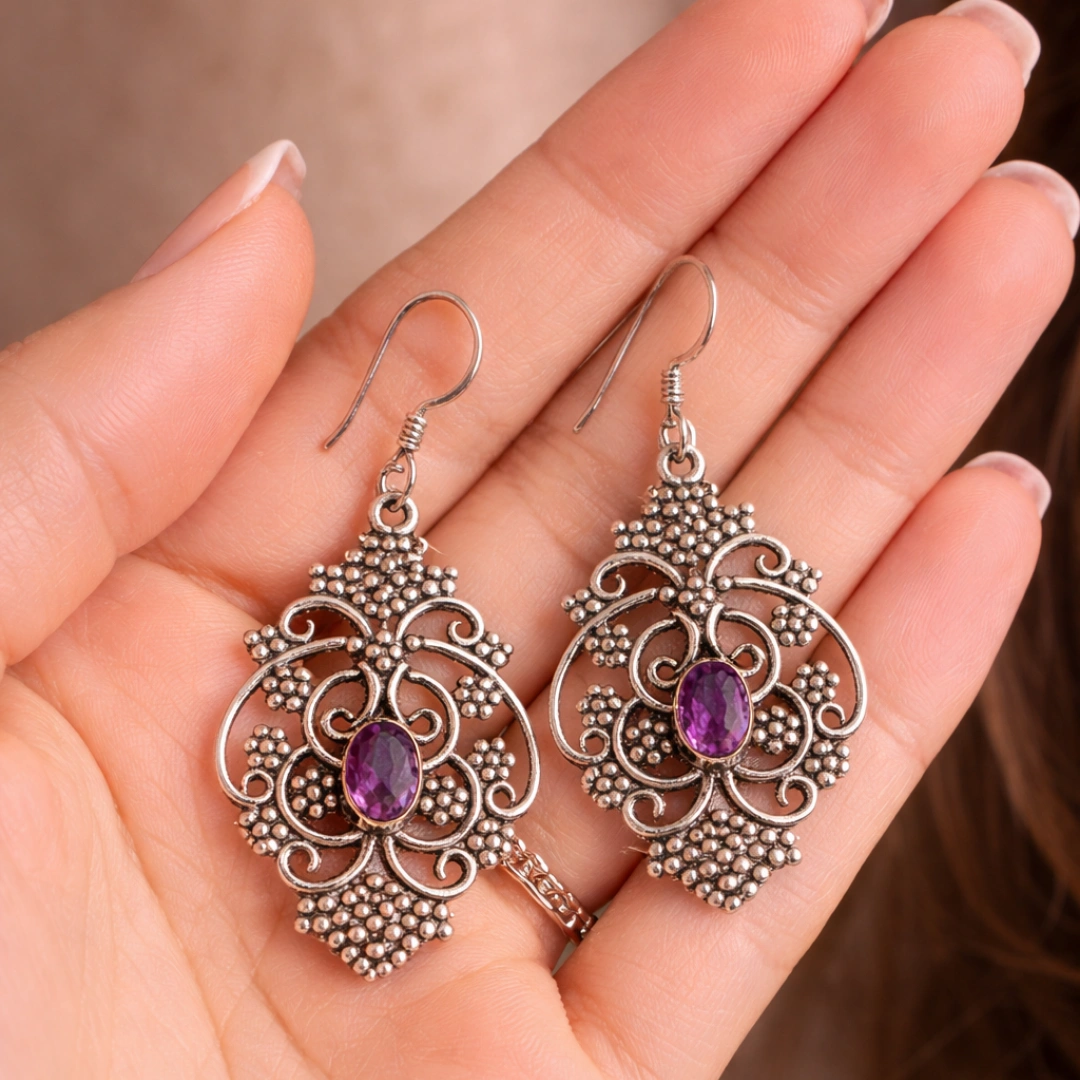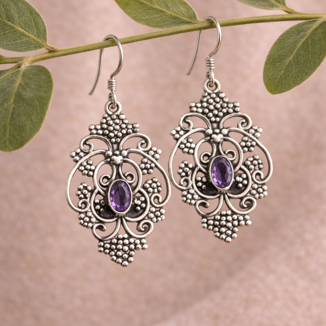 925 Sterling Silver Natural Amethyst Earrings