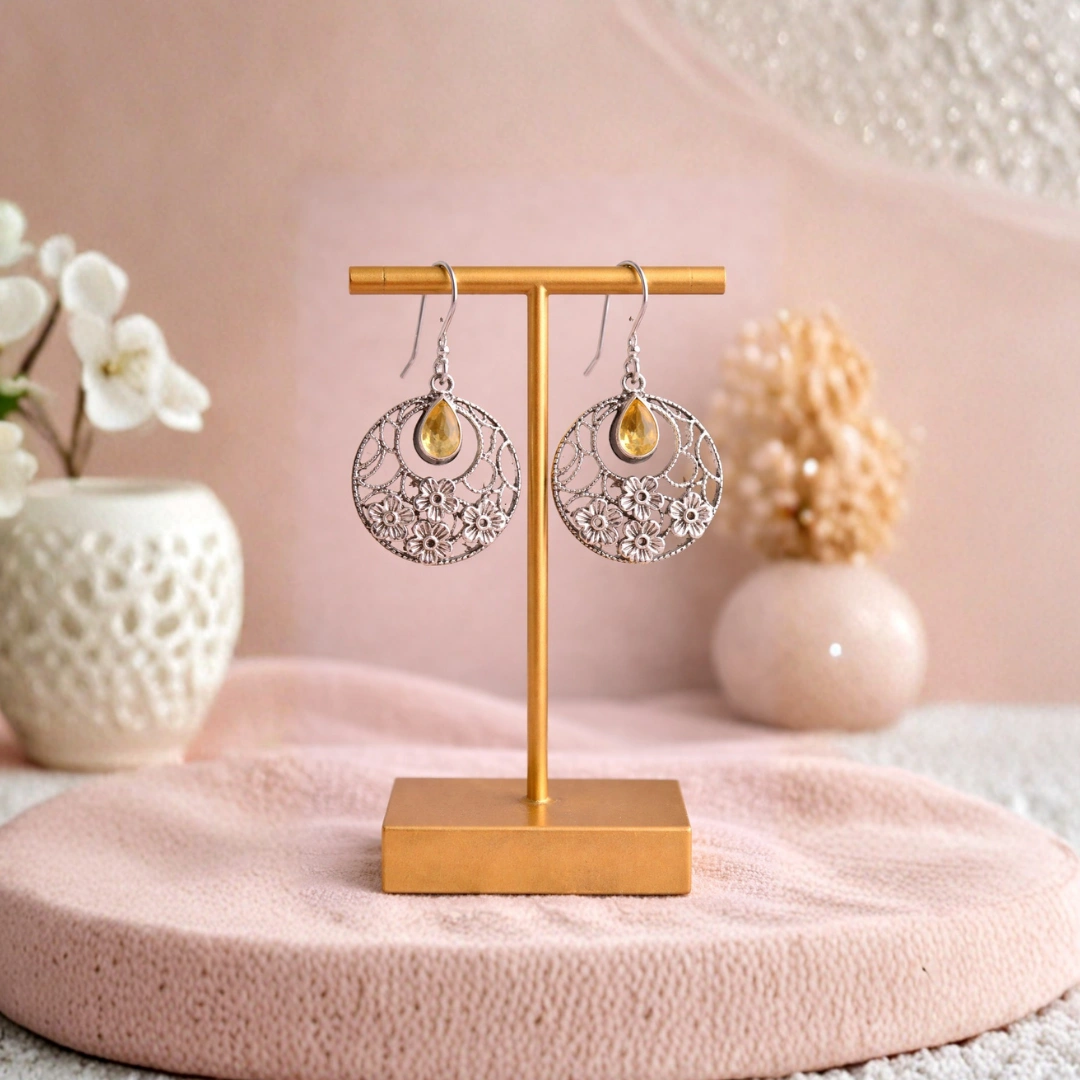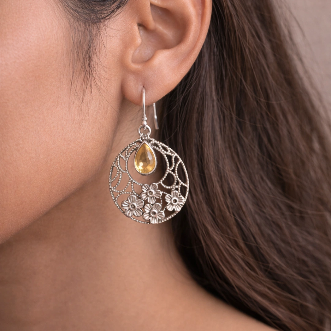 Yeh 925 Sterling Silver Natural Citrine Earrings ready hain teri life mein golden abundance laane ke liye. Wealth chahiye? Success chahiye? Positivity chahiye? Yeh earrings prosperity energy deliver karti hain beautiful golden package mein.
