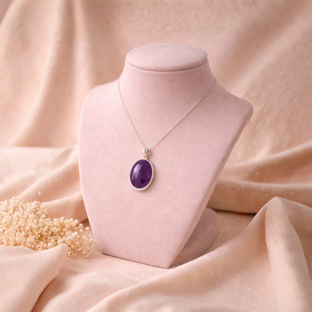 Every Amethyst Divine Oval Pendant is individually hand-inspected — color depth, clarity, no fractures, setting quality, silver finish. We reject pieces that do not meet our standard. Not batches — individual pieces.
