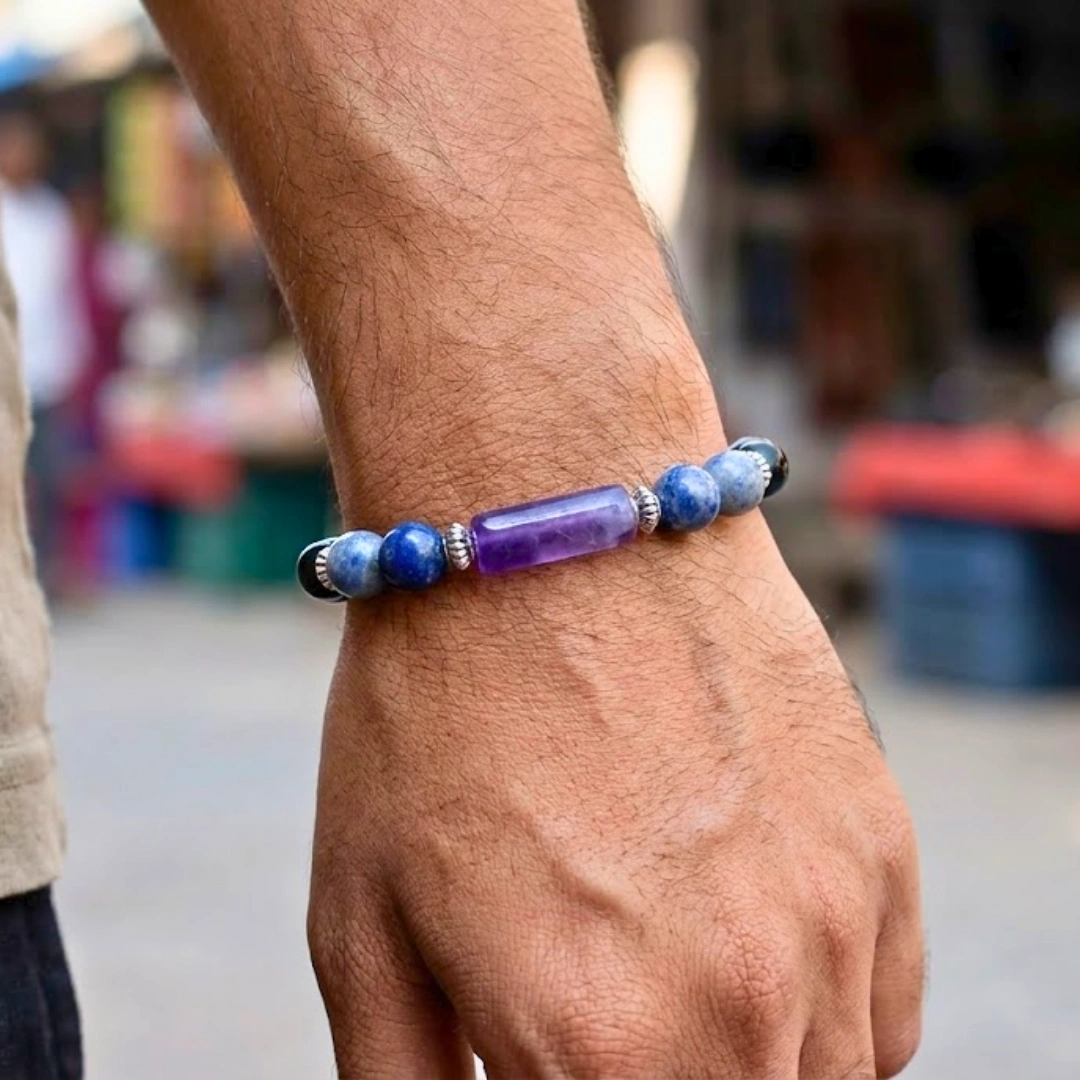At the sides of this bracelet sits lapis lazuli — and for Kumbh rashi, this stone does something no other can.