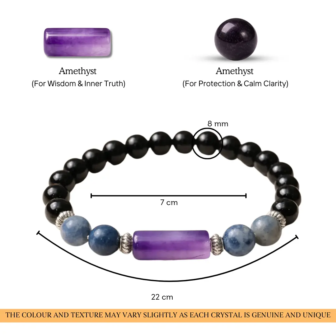 This bracelet is for the grounding. The permission to rest inside the vision rather than being driven by it. The protection that allows Kumbh rashi to remain genuinely open to the world without being consumed by it. The voice that finally says the true thing, clearly, without apology.