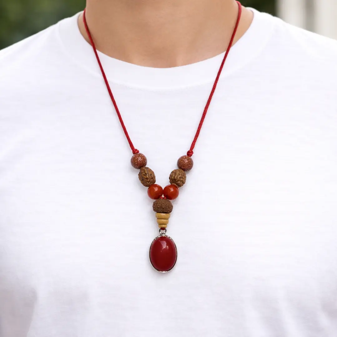 The Carnelian beads on this pendant's cord serve a specific and powerful purpose — they activate the exact quality that Mesh rashi was born to express.