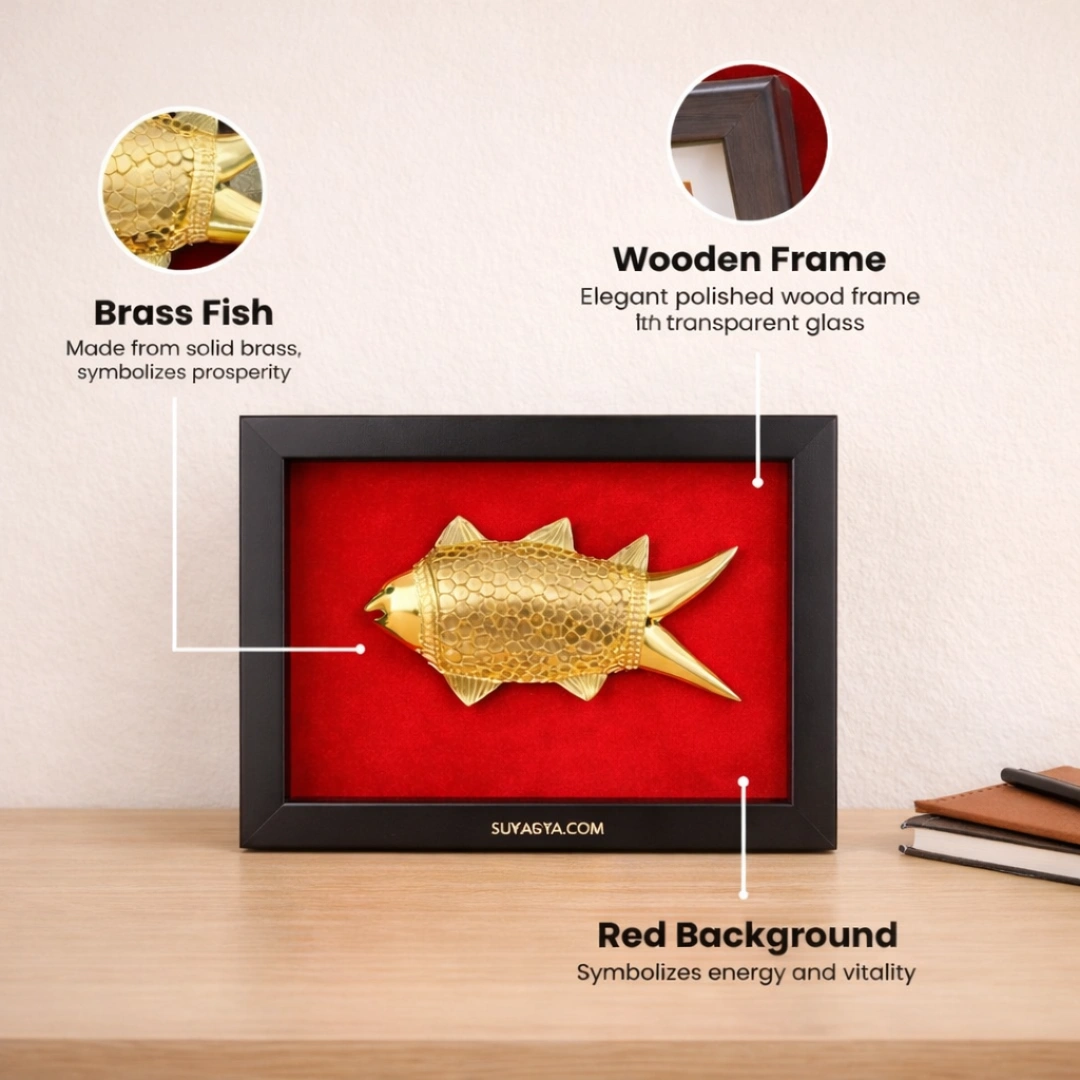 Step 1: Clean the brass fish gently with a soft cloth. Step 2: Wash it lightly with clean water mixed with a pinch of turmeric (haldi) — turmeric purifies and activates the golden Jupiter energy. Step 3: Pat dry completely. Step 4: Light a ghee diya and an incense stick (agarbatti) near the fish. Step 5: Say a simple intention — "This Dhan Vridhi Fish activates wealth, prosperity, and protection for my home/office/business and family. Om Shreem Mahalakshmyai Namah." Say this 3 times. Step 6: Place the fish in your chosen location — Southeast corner, office desk, cash counter, etc. Step 7: Fish mouth facing INWARD (toward center of space, NOT toward the door).