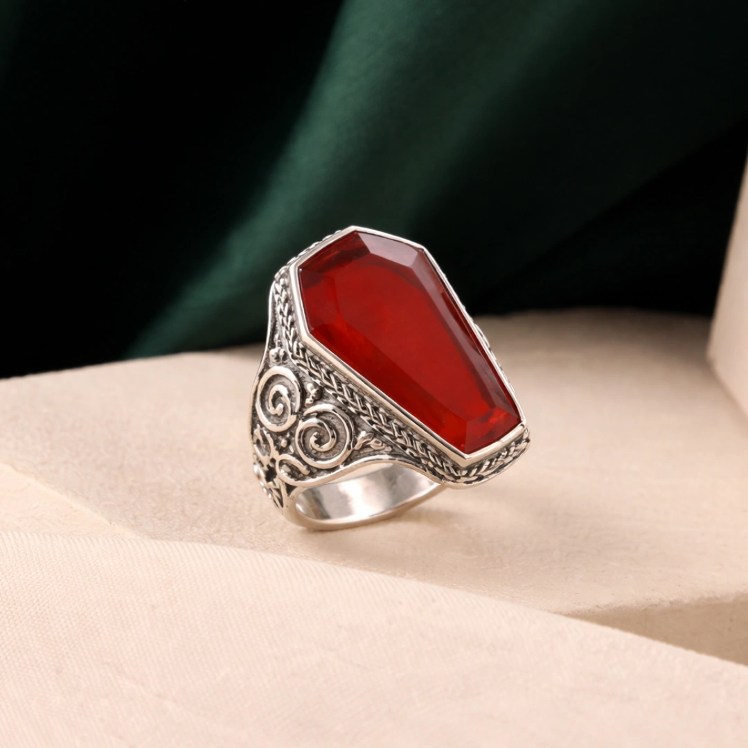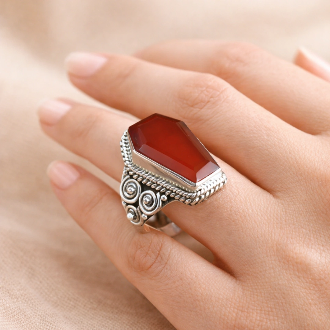 Yeh Gothic Carnelian Coffin Ring exactly wahi hai—bold, beautiful, aur unapologetically different.