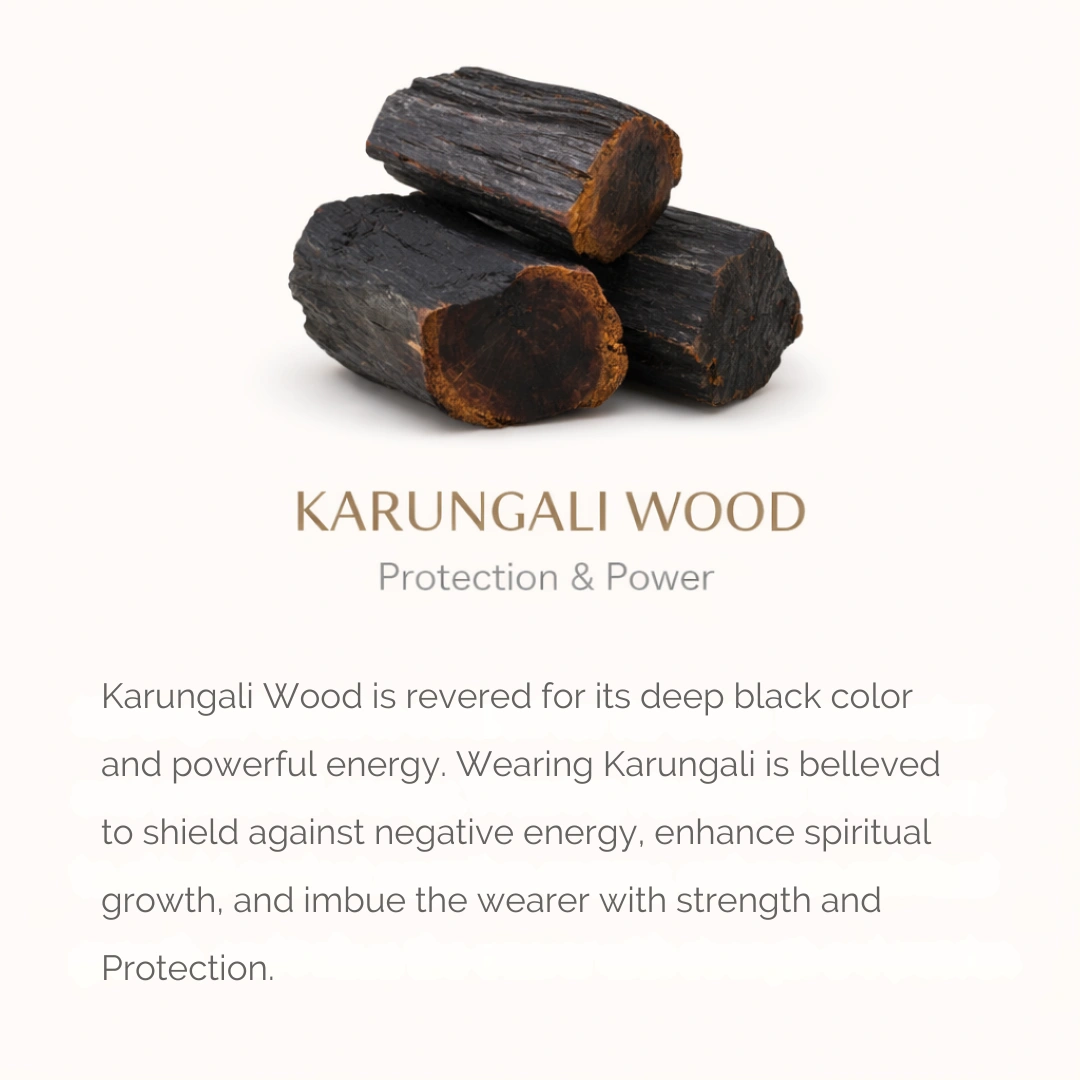 Health Support — Traditionally, wearing Karungali is believed to support immunity, reduce blood-related issues, strengthen bones, relax the nervous system, and promote overall vitality.