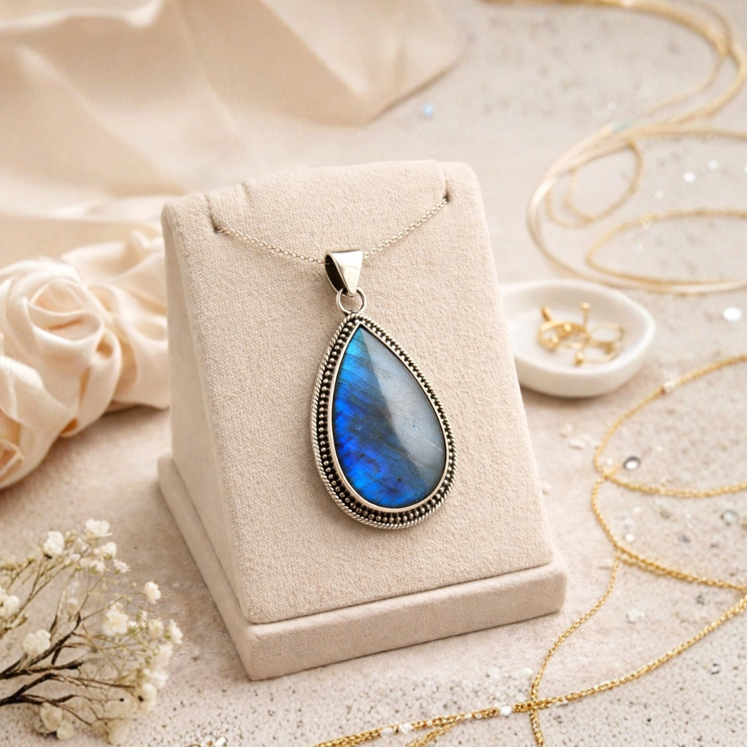 Kyunki labradorescence natural phenomenon hai, no two labradorite stones exactly same nahi hote. Aapka pendant truly one-of-a-kind hai – like your own personal piece of frozen Northern Lights.