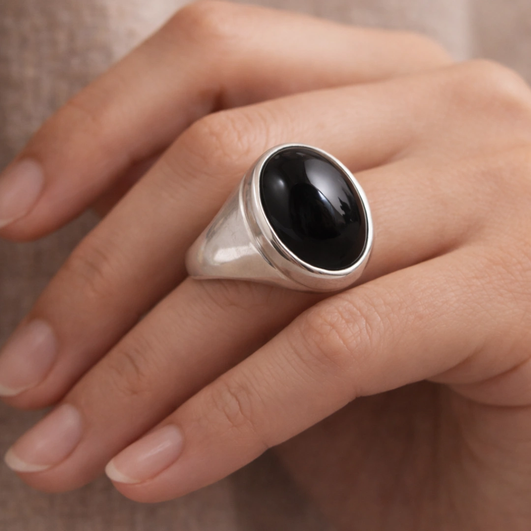 Black Onyx Signet Ring = Perfect blend of classic masculine elegance aur ancient protective power.