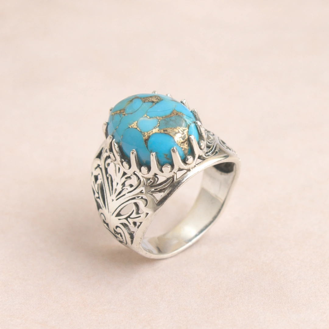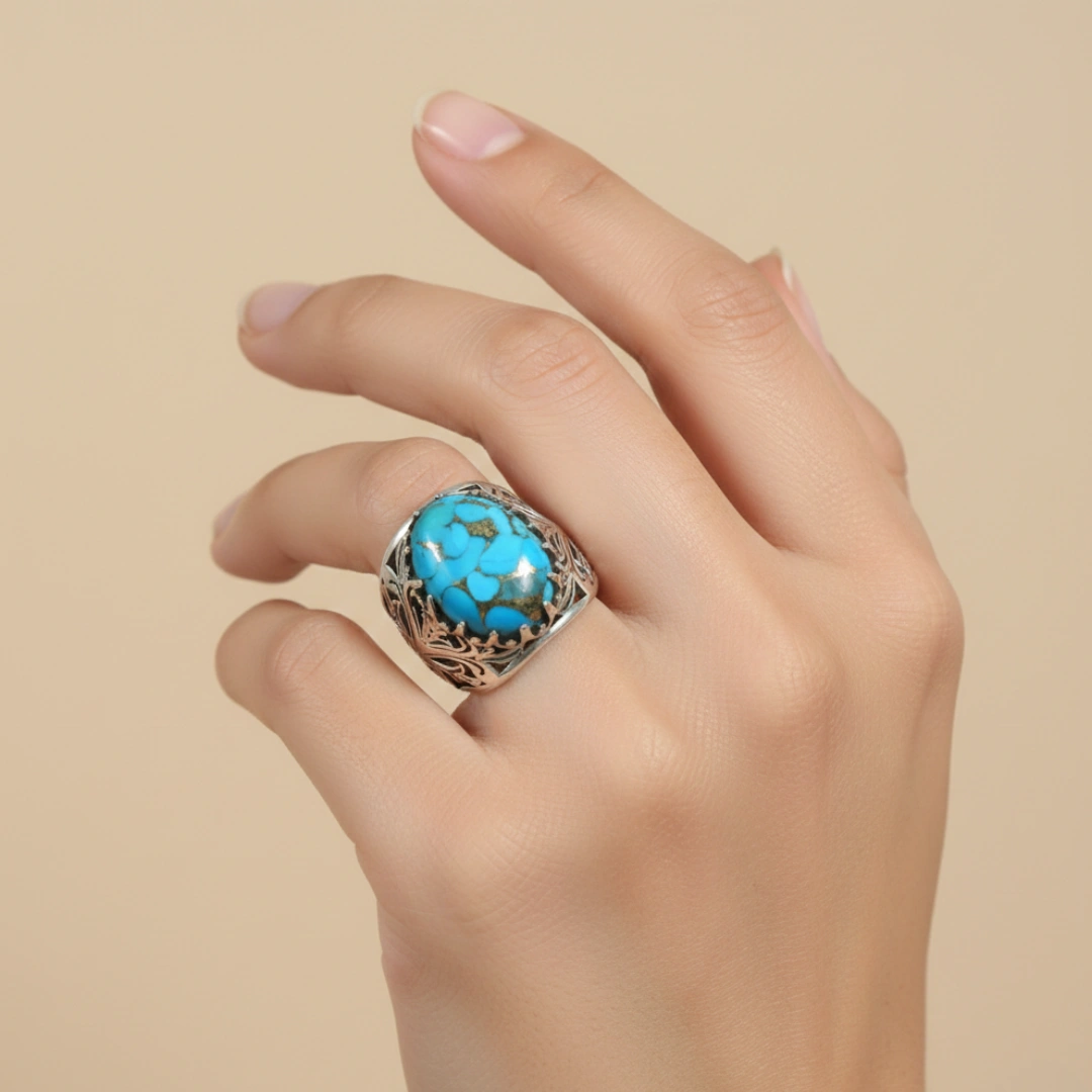 Important presentations, negotiations—turquoise aapko calm + confident rakhta hai. Signet ring = authority symbol.