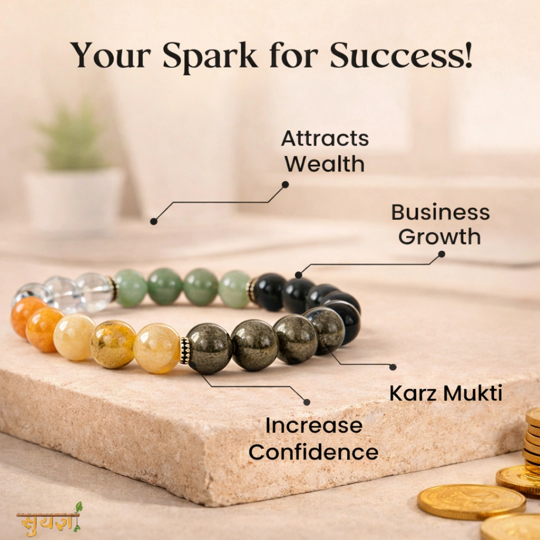 SUYAGYA ka Money Magnet Bracelet teri energy field ko "scarcity mode" se "abundance mode" me shift karne ke liye designed hai. 5 carefully chosen wealth crystals — har ek ka apna role hai, apni energy hai, aur sab milke ek comprehensive wealth attraction system banate hain.