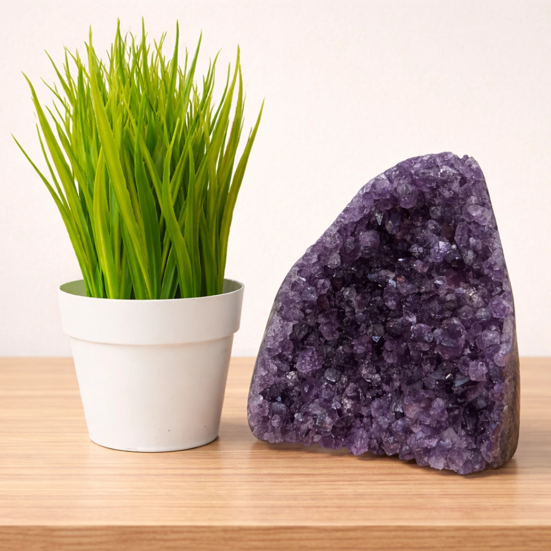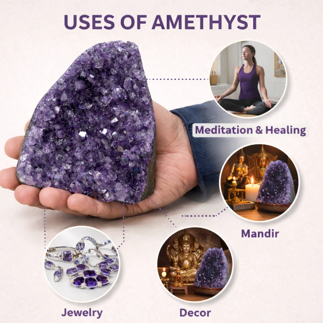 Amethyst ka purple color spirituality ka symbol hai — Crown Chakra aur Third Eye Chakra se connected. Yeh Cave form extra powerful hai kyunki crystals andar ki taraf point karte hain, energy ko concentrate aur amplify karte hain.