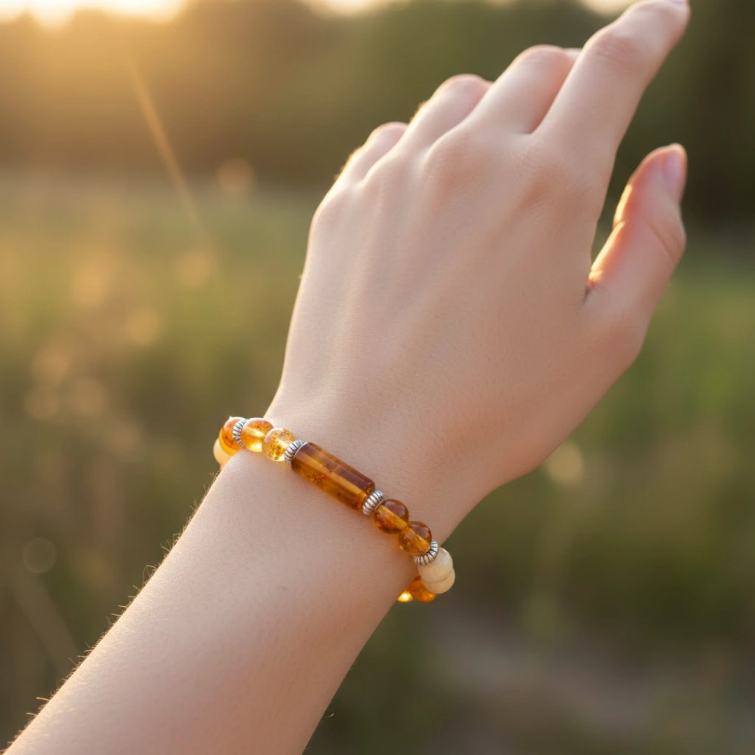 At the center of this bracelet sits citrine — and its role is as bright and clear as its golden color.