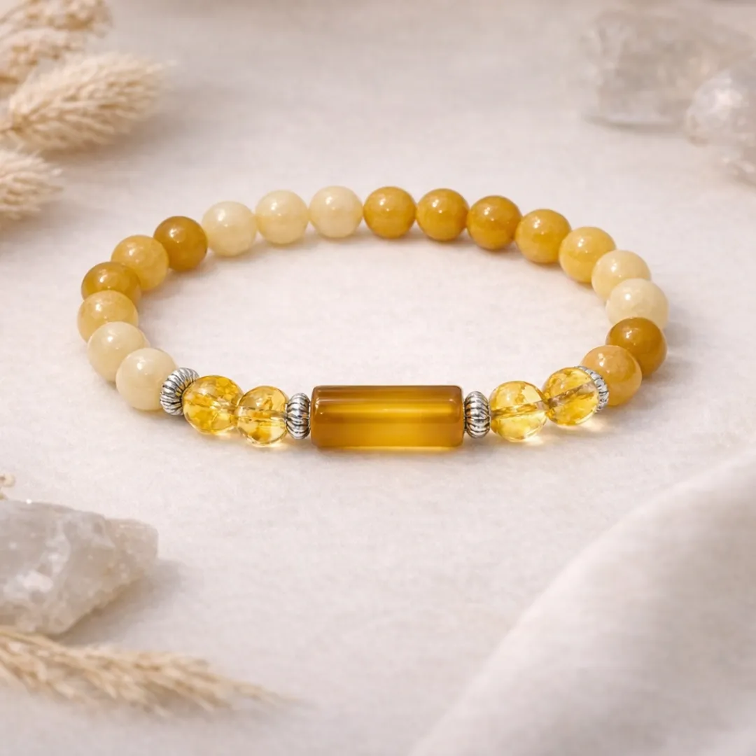 Yellow jade is the stone of wisdom, joy, and the specifically grounded happiness that comes from being genuinely present in one's own life — not just dreaming of it.