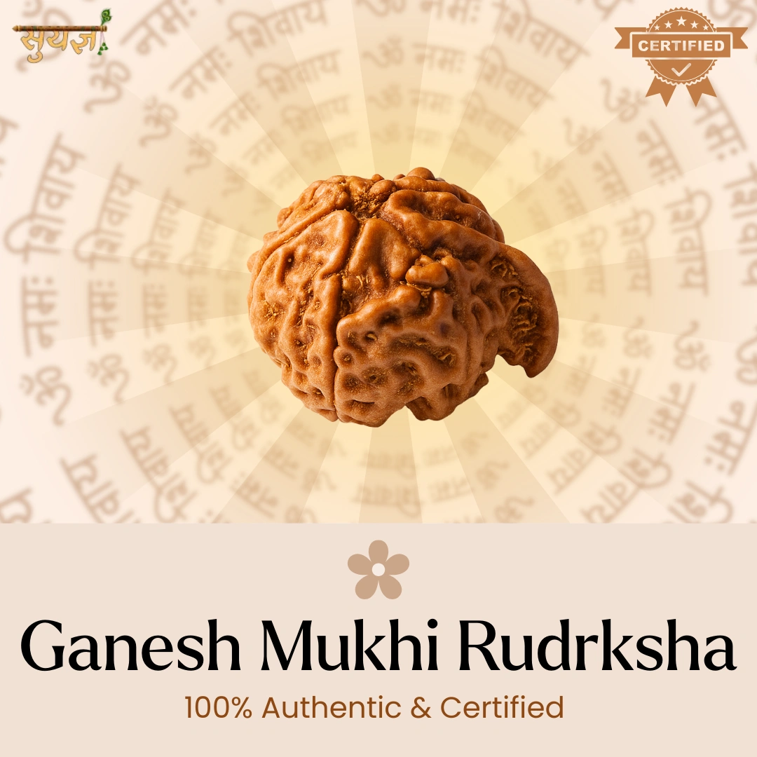 Ganesh Rudraksha ko hum Suyagya mein "The First Step Bead" maante hain. Yeh naturally formed Rudraksha hai jo trunk (sund) jaisi shape mein hota hai – exactly jaise Ganesh ji ka swaroop. Isko pehenna matlab Vighnaharta ka ashirwad hamesha saath hai.