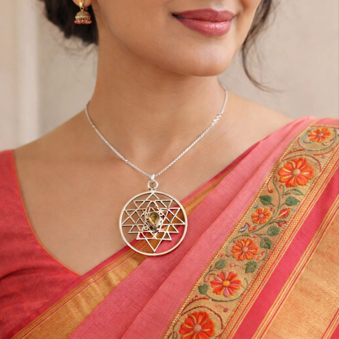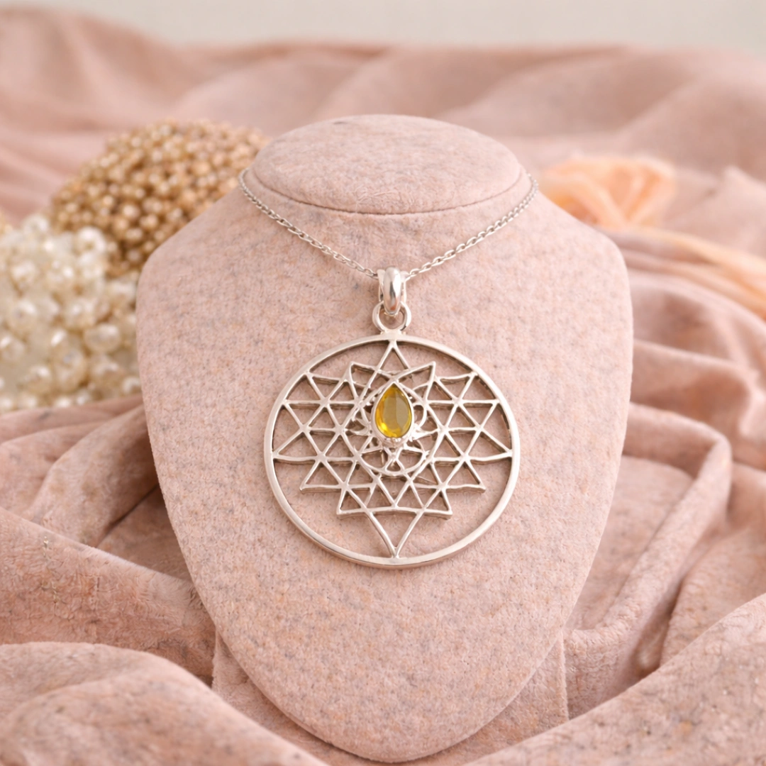 Pendant form mein Citrine directly heart chakra ke paas rehta hai — abundance WITH love.