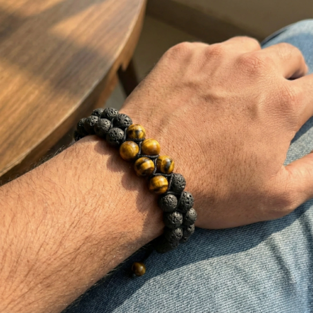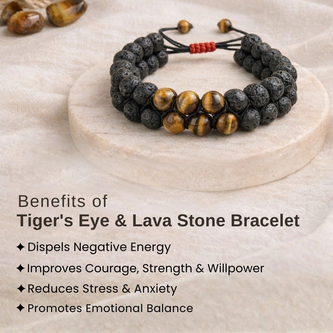 The Tiger Eye & Lava Stone Nazar Suraksha Bracelet is not designed to look spiritual. It is designed to work spiritually — and look good doing it.