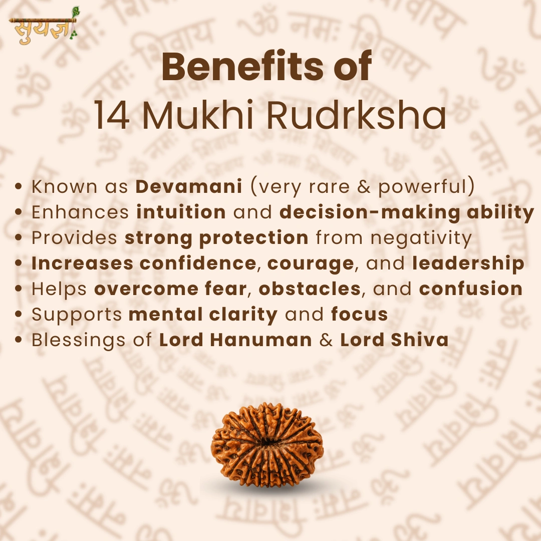 14 Mukhi ko "Deva Mani" (Divine Gem) bhi kaha jaata hai – itna precious aur rare hai yeh. Traditionally iska role maana jaata hai: