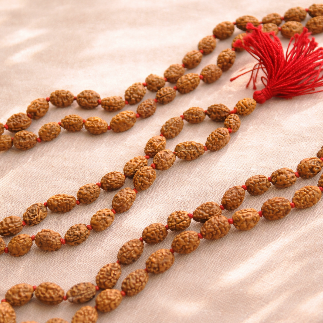 - Mukhi counting – har bead pe 3 lines clearly visible