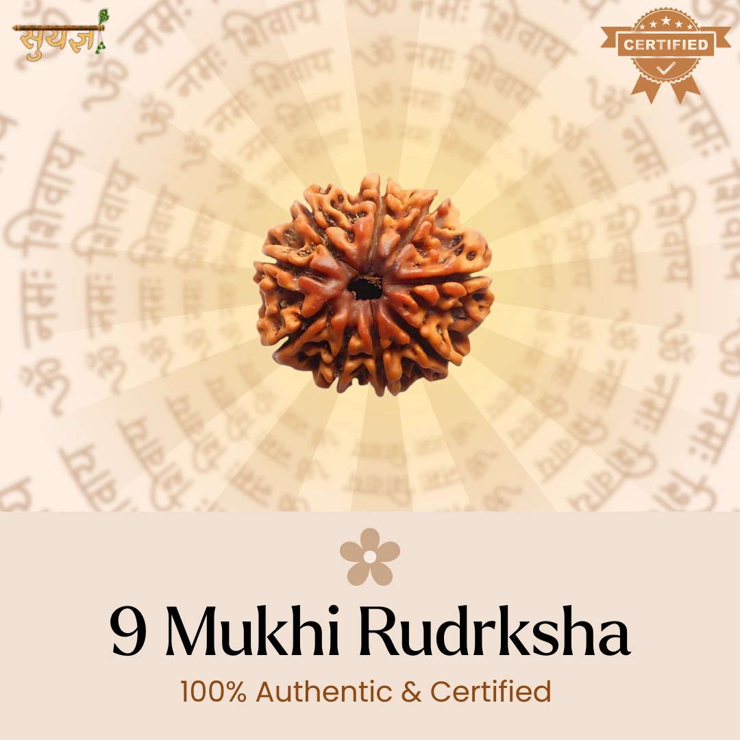 9 Mukhi Rudraksha ko hum Suyagya mein "Shakti ka Rudraksha" kehte hain. Yeh Maa Durga ki energy se connected hai – wo Maa jo apne bacchon ko protect karti hai aur unhe fearless banati hai.