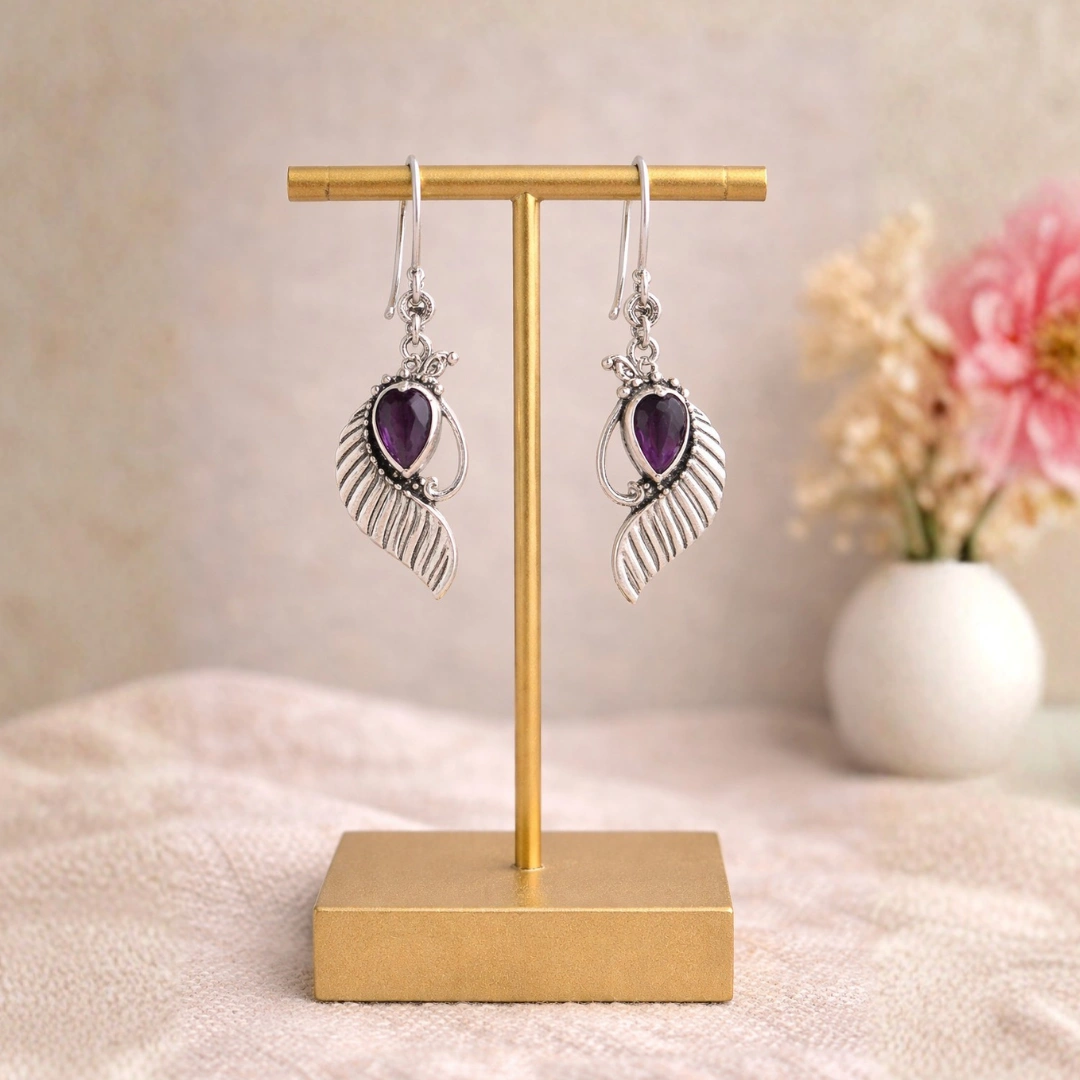 Yeh 925 Sterling Silver Natural Amethyst Leaf Earrings ready hain tujhe nature ki peace aur amethyst ki calm dono dene ke liye. Forest serenity chahiye? Crystal calm chahiye? Botanical beauty chahiye? Yeh earrings sab deliver karti hain ek organic elegant package mein.