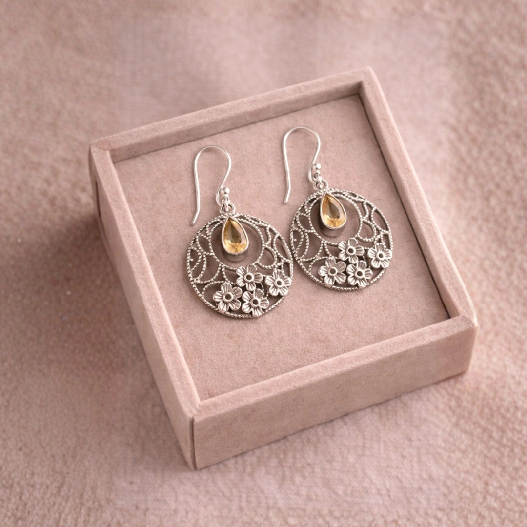 Yeh 925 Sterling Silver Natural Citrine Earrings ready hain teri life mein golden abundance laane ke liye. Wealth chahiye? Success chahiye? Positivity chahiye? Yeh earrings prosperity energy deliver karti hain beautiful golden package mein.