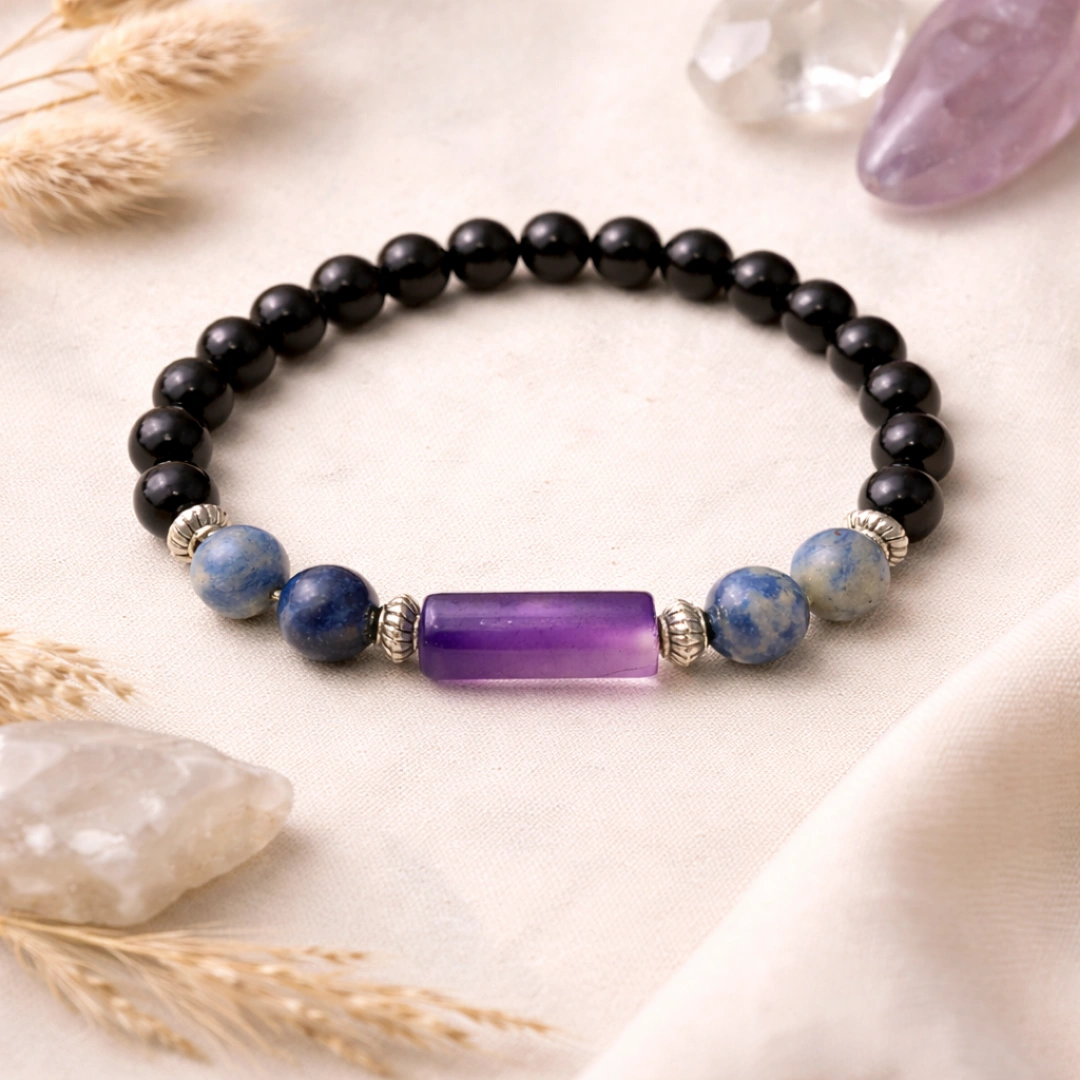 This bracelet is for the grounding. The permission to rest inside the vision rather than being driven by it. The protection that allows Kumbh rashi to remain genuinely open to the world without being consumed by it. The voice that finally says the true thing, clearly, without apology.