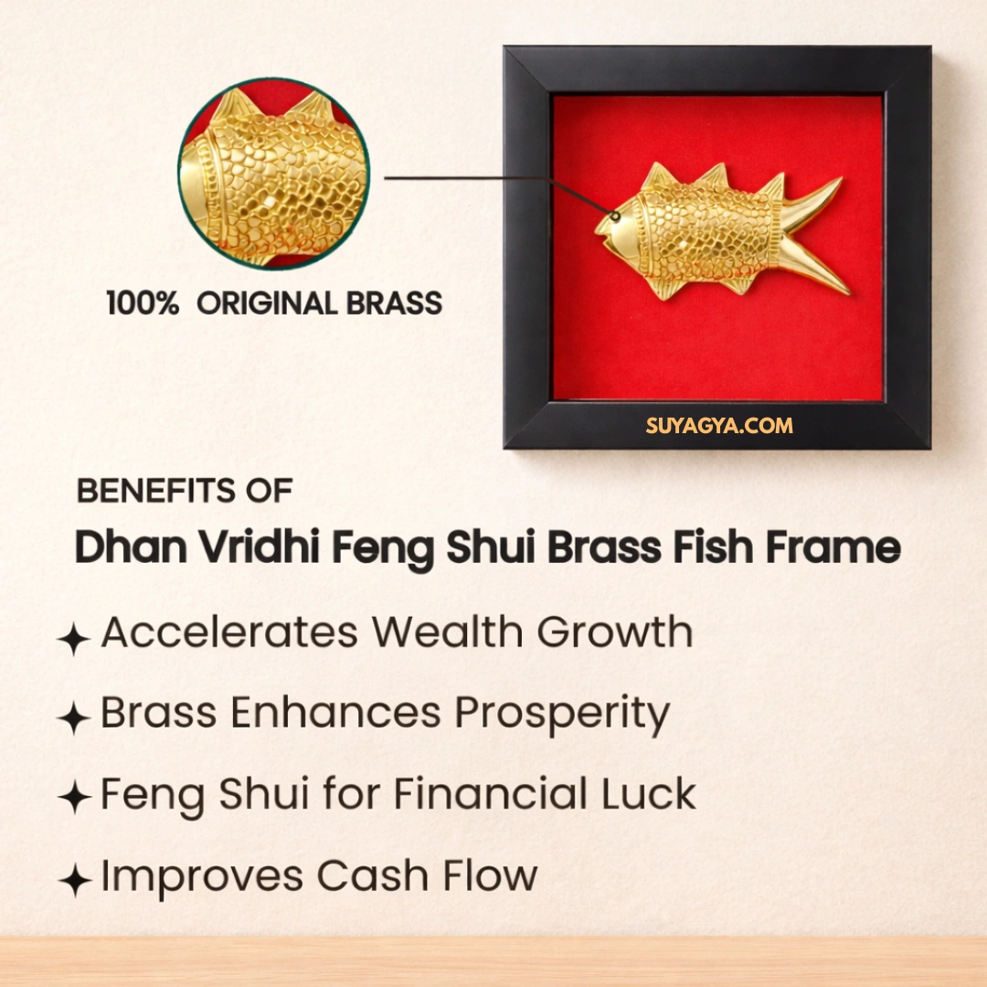 Step 1: Clean the brass fish gently with a soft cloth. Step 2: Wash it lightly with clean water mixed with a pinch of turmeric (haldi) — turmeric purifies and activates the golden Jupiter energy. Step 3: Pat dry completely. Step 4: Light a ghee diya and an incense stick (agarbatti) near the fish. Step 5: Say a simple intention — "This Dhan Vridhi Fish activates wealth, prosperity, and protection for my home/office/business and family. Om Shreem Mahalakshmyai Namah." Say this 3 times. Step 6: Place the fish in your chosen location — Southeast corner, office desk, cash counter, etc. Step 7: Fish mouth facing INWARD (toward center of space, NOT toward the door).