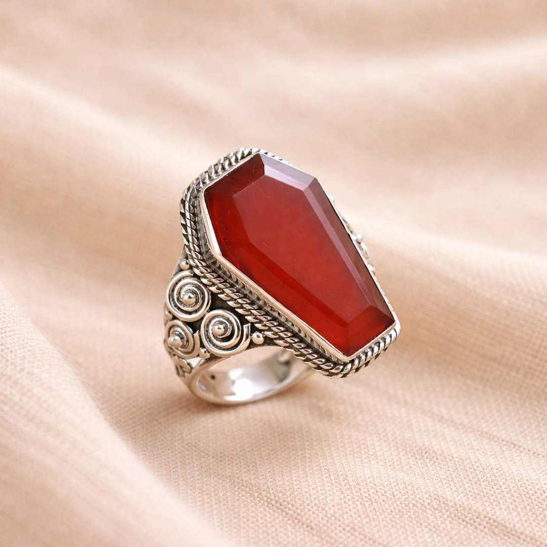 Yeh Gothic Carnelian Coffin Ring exactly wahi hai—bold, beautiful, aur unapologetically different.
