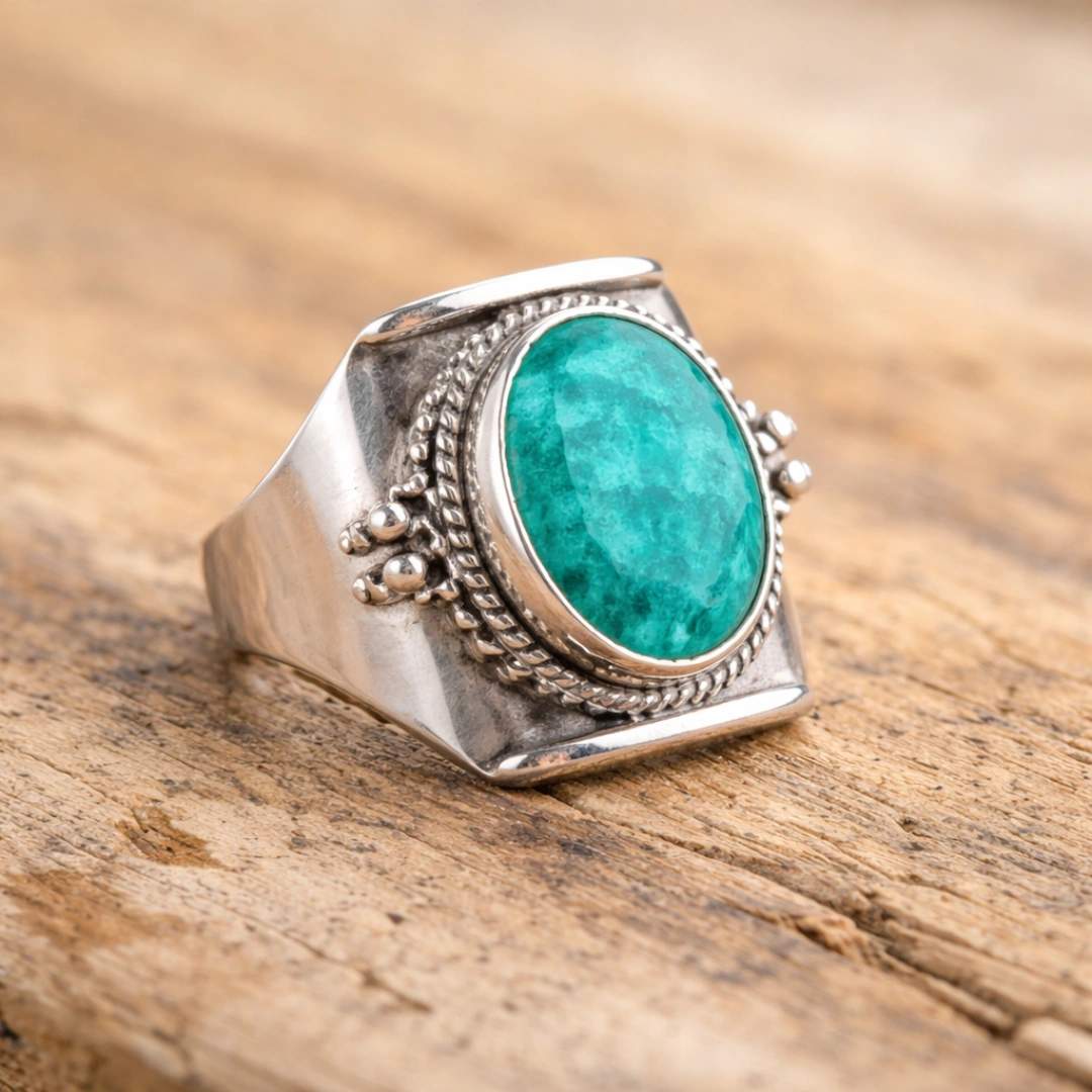 "Stone of Prosperity" – jo centuries se kings, queens aur wise men ki first choice raha hai. Yeh stunning Indian Emerald Statement Ring natural Panna stone aur 925 Sterling Silver ka perfect combination hai jo aapke hands ko instant attention-grabbing presence deta hai.