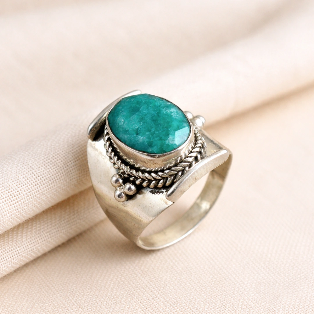 Indian Emerald Statement Ring | 925 Silver Panna Stone