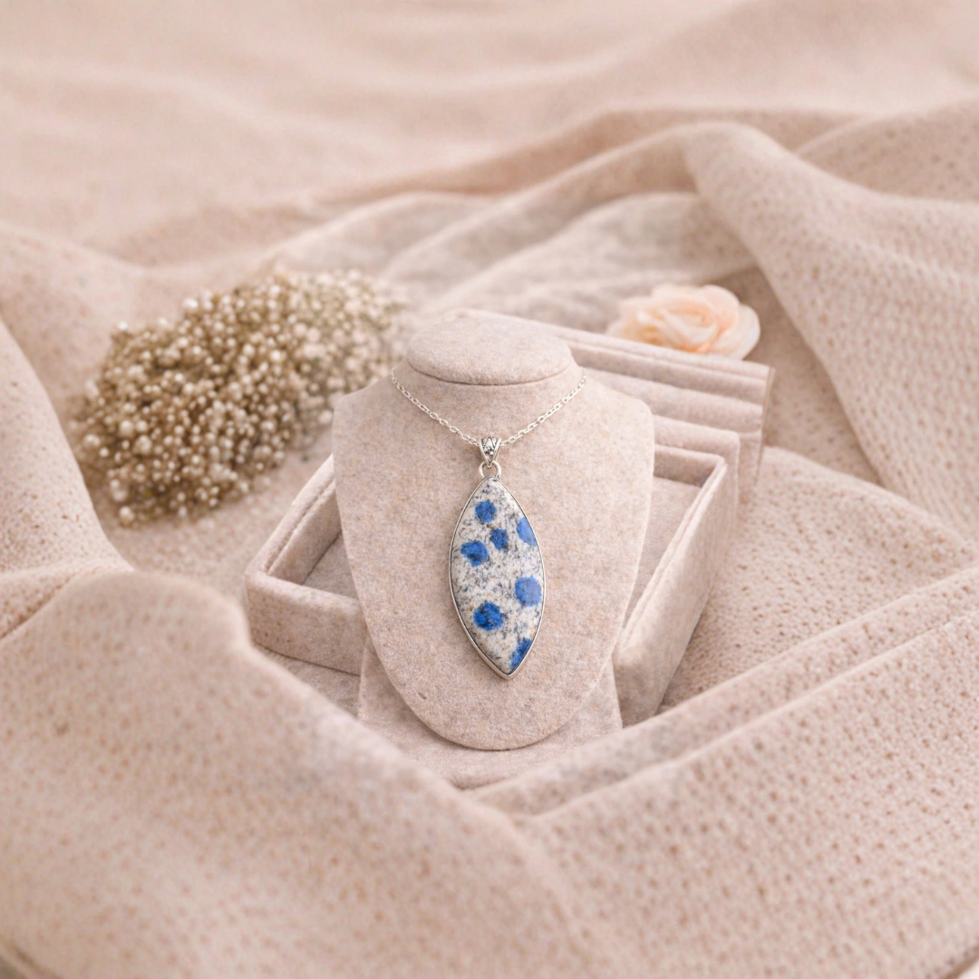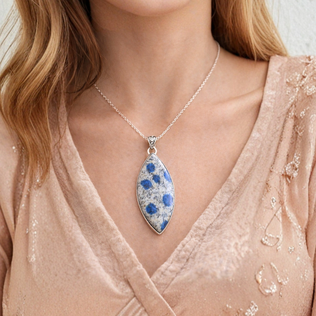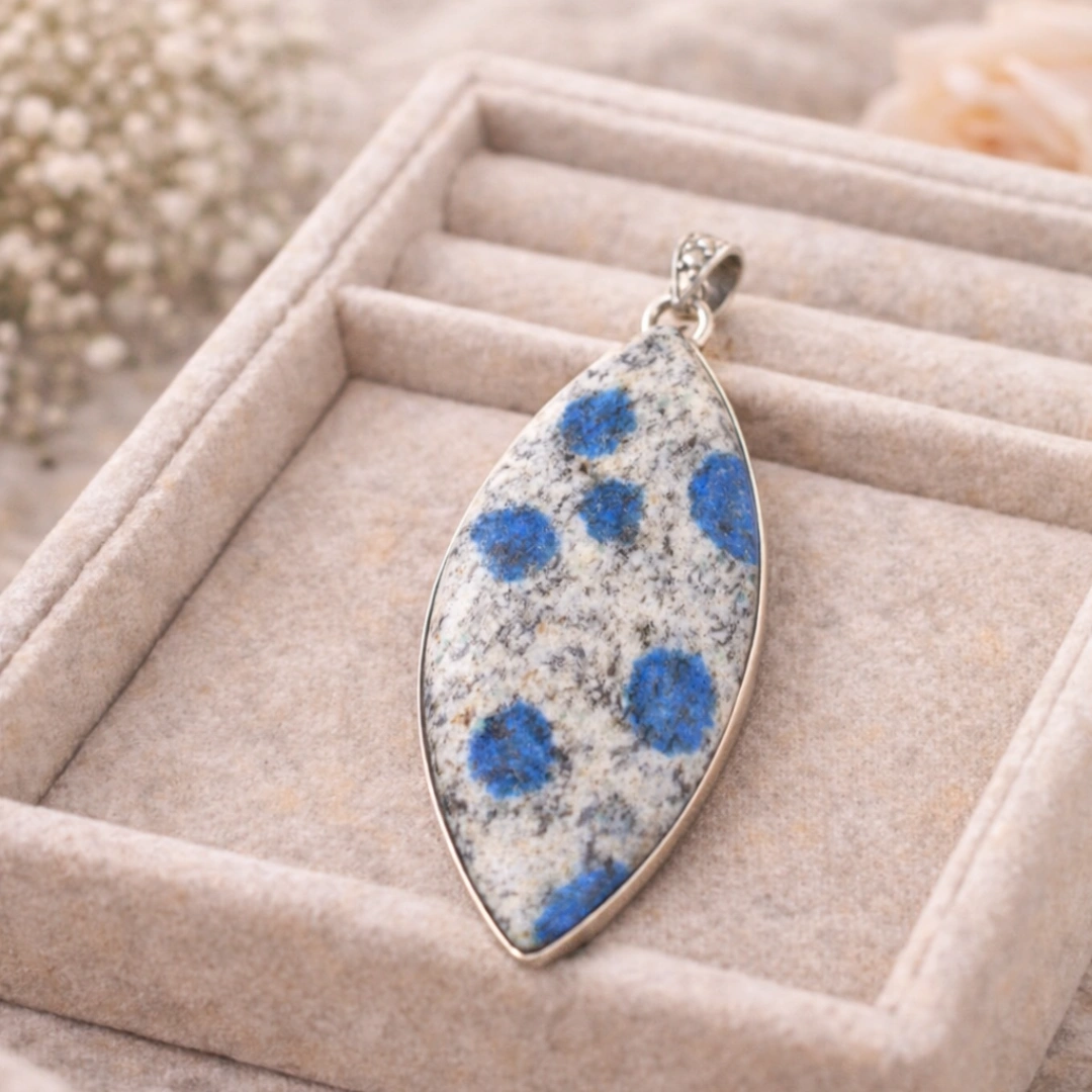 Haan, absolutely! K2 Jasper durable hai (granite base strong hai). Daily wear ke liye suitable hai. Just basic care follow karein – harsh chemicals avoid karein, prolonged direct sunlight se bachayein (Azurite fade ho sakti hai), aur soft cloth se occasionally clean karein. Pendant form safe hai because stone protected rehta hai body ke close.