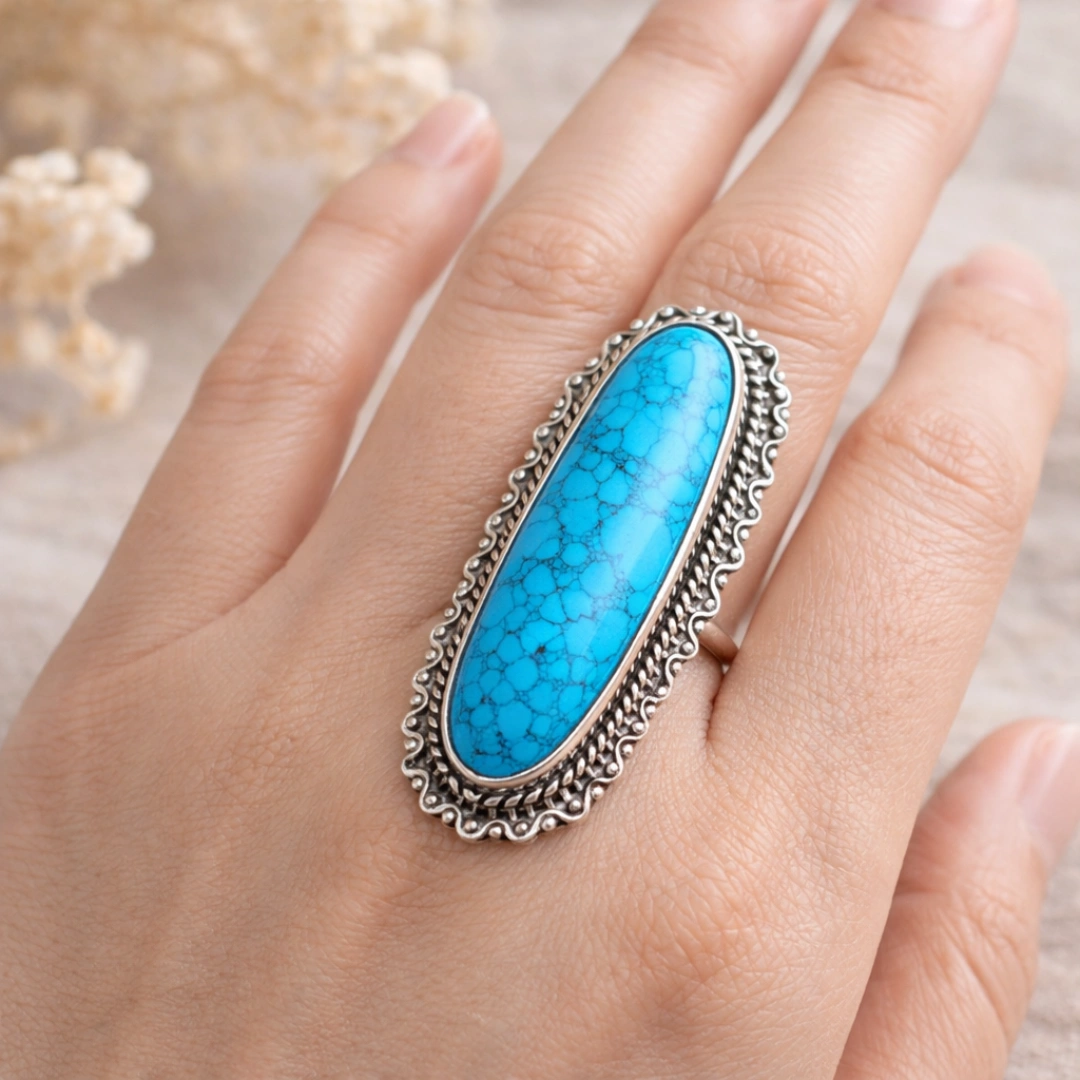 Firoza (Turquoise) duniya ke sabse purane gemstones mein se ek hai – literally 5000+ years purana. Egyptian Pharaohs isko pehnte the. Persian Kings apne crowns mein lagwate the. Native American warriors isko protection ke liye use karte the. Aur aaj, yeh same stone ek modern statement ring mein aapke saamne hai.