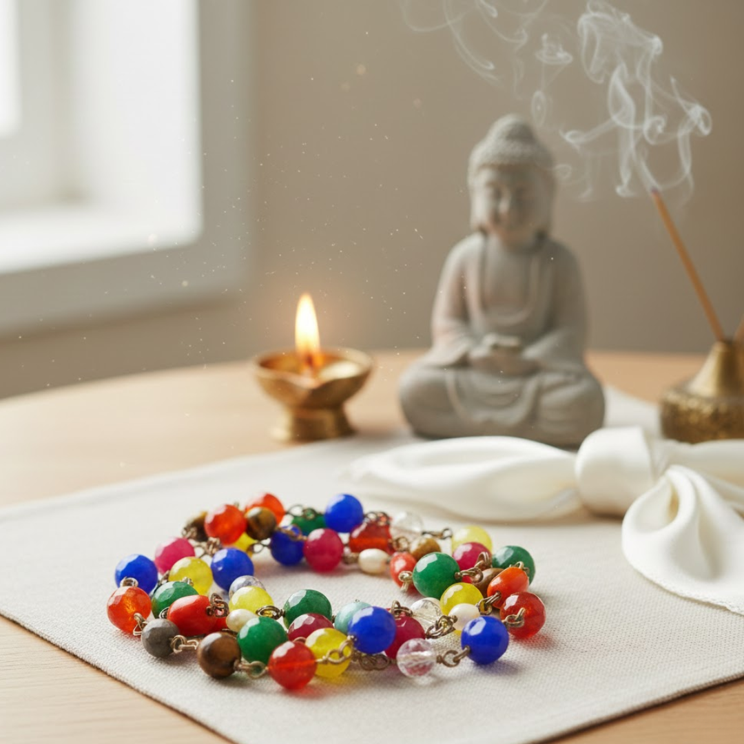 No Kundli Required — Unlike single gemstones (which require careful kundli analysis to avoid wrong planet activation), Navrattan Mala is safe for everyone. All 9 stones balance each other — no risk of wrong stone, no side effects. Universal remedy.