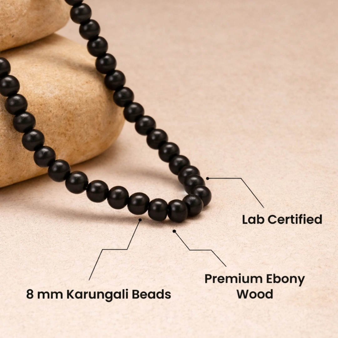 4. Mangal Dosha Remedy Karungali wood ka astrological connection Mars (Mangal) se hai. Jo log Mangal Dosha se affected hain — emotional outbursts, impatience, conflicts — unke liye yeh malai Mars ki fiery energy ko balance karne mein ek supportive role play karti hai. Note: Yeh astrologer ki guidance ka replacement nahi — ek supportive companion hai.