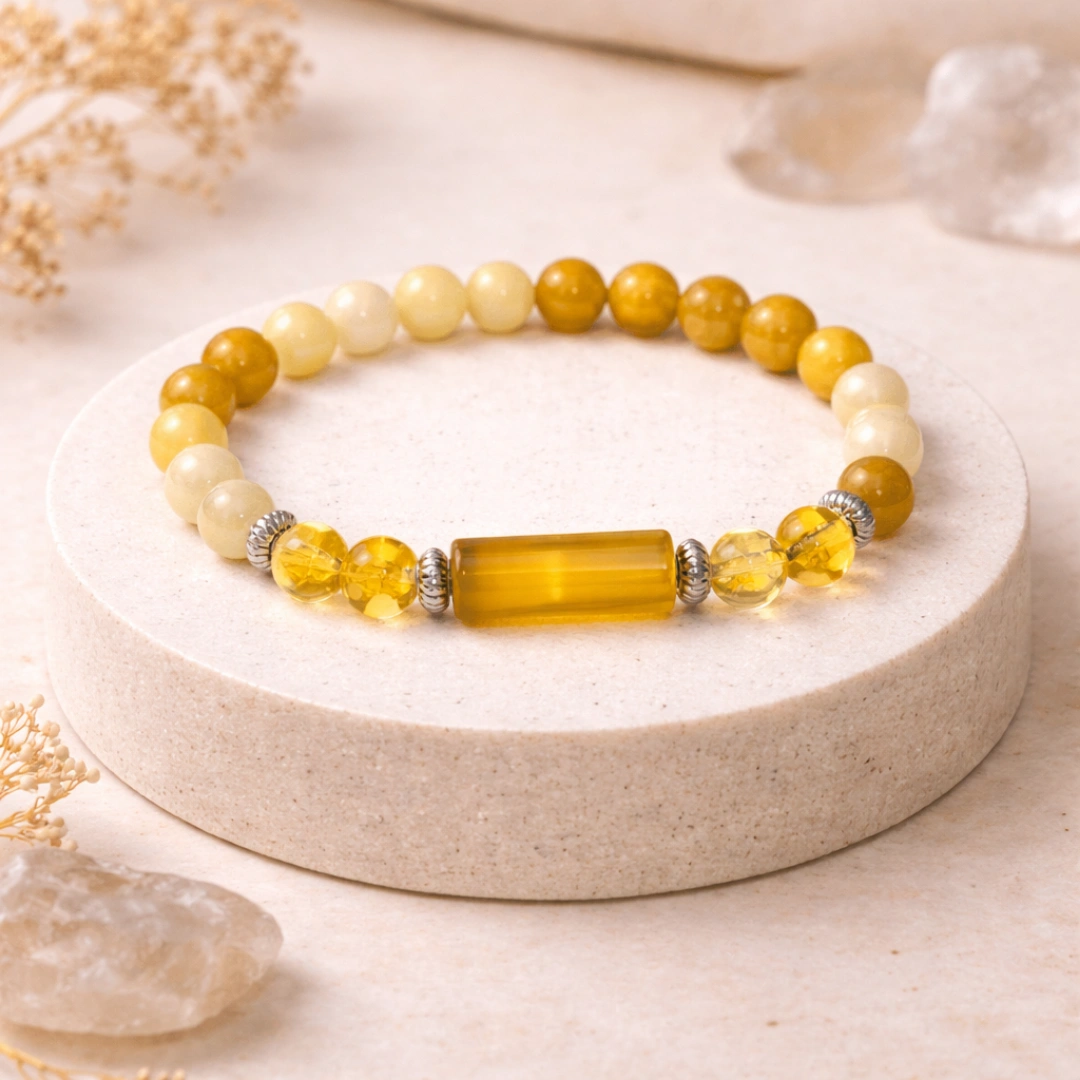 Yellow jade is the stone of wisdom, joy, and the specifically grounded happiness that comes from being genuinely present in one's own life — not just dreaming of it.