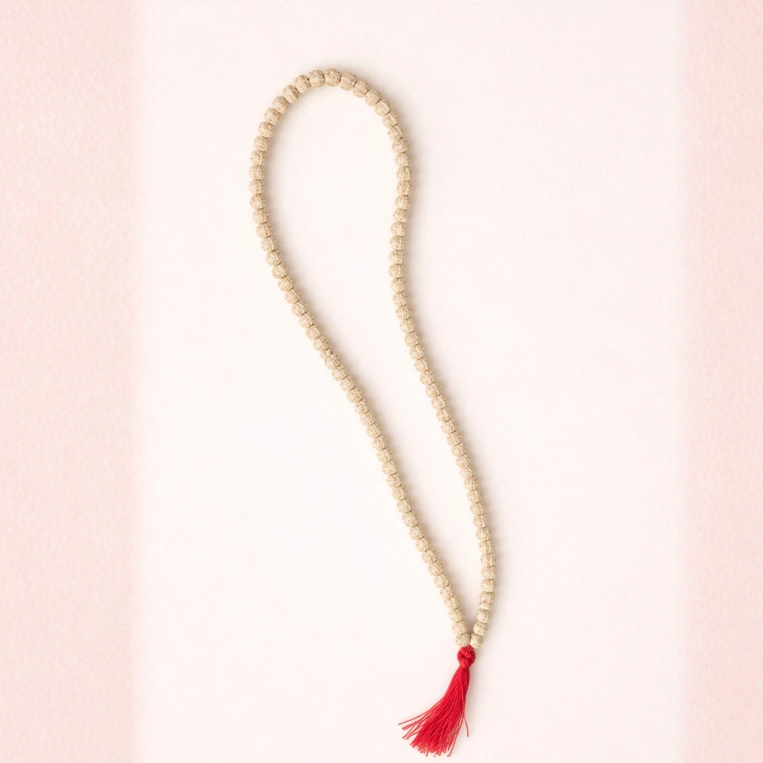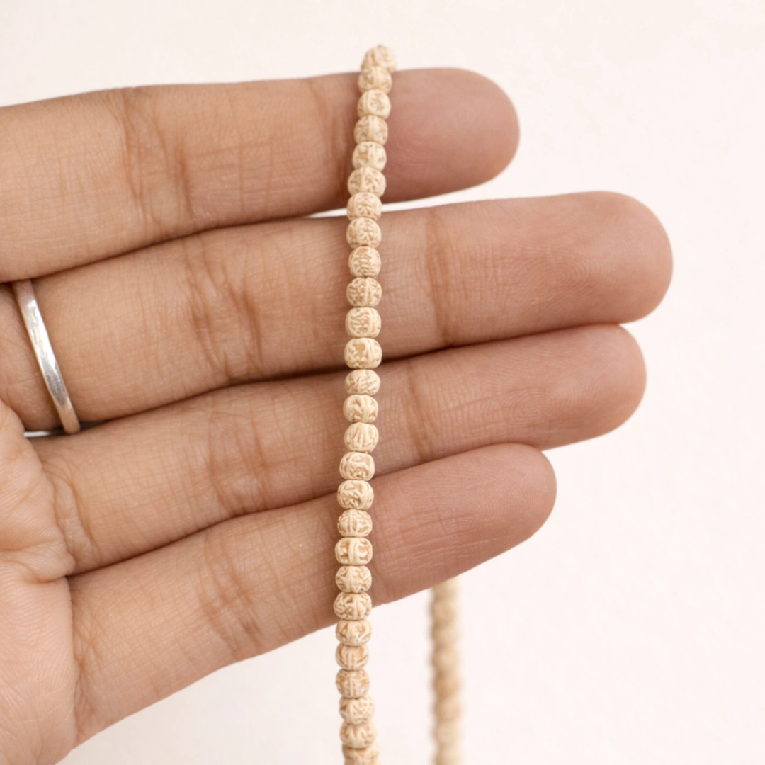 Step 1 – Bead Selection Thakur ji ke liye mala mein extra care li jaati hai. Har bead Nepal origin, genuine, aur visually sundar honi chahiye – kyunki yeh Bhagwan ki hai.
