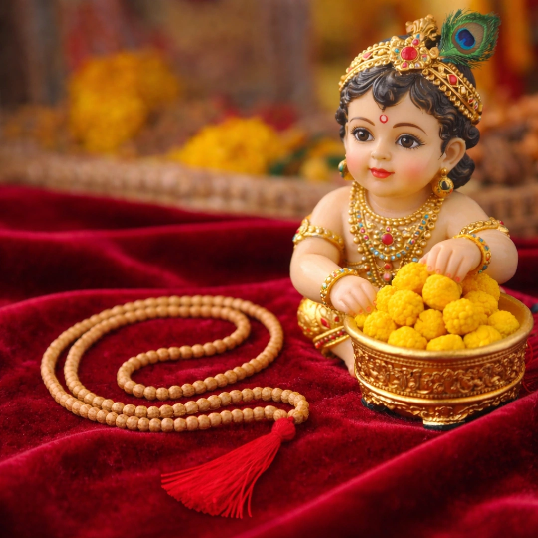 Laddu Gopal ji (Kanha ji, Bal Gopal) ke saath Rudrayani Mala rakhna bahut shubh hai: