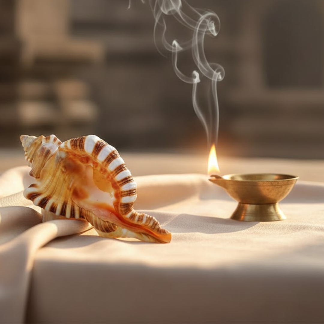Hindu pooja me do cheezein hamesha sabse pehle hoti hain — Ganesha ki pooja (Pratham Pujya — sabse pehle poojan) aur Shankh bajana (space purification). Ganesha pehle — kyunki obstacles hatane hain. Shankh pehle — kyunki space saaf karna hai.